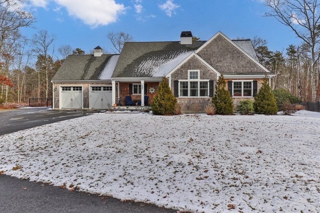 Situated at the top of a winding driveway flanked with stone pillars and a beautiful wrought iron fence sits this impeccably maintained custom ranch style home abutting Pickerel Cove Conservation Area. It's like living on your own nature preserve, step outside your back door to nature trails leading to Mashpee Pond. The open floor plan has been thoughtfully designed and flows perfectly. The high ceilings and abundance of windows make the home bright and airy. The custom, tastefully designed kitchen complete with granite countertops and a beautiful backsplash opens to the eating and living area for ease of entertaining. The well appointed primary suite is tucked away in the back of the home offering ultimate privacy. There are two additional large bedrooms, full bath and laundry area in the front of the home ideal for out of town guests or multi generational living. There is no shortage of storage in the oversized garage, this is truly a must see to be fully appreciated.