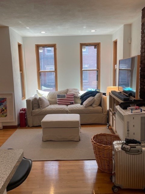 Located on a charming North End street, steps from Boston's historic Waterfront and the Rose Kennedy Greenway, this beautiful south facing one bedroom home exudes warmth and style. The entry foyer leads to a generous bow front living/dining room, which features gleaming hardwood floors, high ceilings, exposed brick, double closet and a wall of windows. The open style kitchen offers custom cabinets, new stainless appliances and a breakfast bar. The generous master bedroom has hardwood floors. A newly renovated bath features custom tile work, wainscoting detail. The building offers a large common roof deck with panoramic water and city views. There is professional off-site management. Battery Street is short walking distance from the cafes, shops, restaurants and historical sites of the exciting North End. It is convenient to the Financial District, public transportation, airport. Sorry, no pets, no smoking, no students. Due at signing: first month rent, security deposit, one month fee.