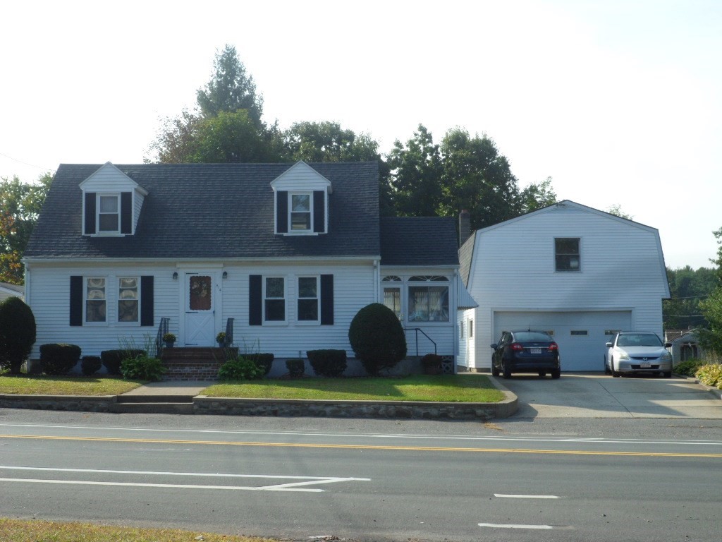 Need 4 bedrooms? Or a large 2 story heated garage? Lovely and sunny 4 Bedroom Cape on Riverside Drive. Quality construction, built in 1949. Same owners since 1960. Perfect for commuters with quick access to Rte. 93. Corner lot, mature plantings, fantastic 2 story garage that will fit 3 or 4 cars. The garage is heated and it has a large second floor. The house had a new roof put on in 2023. It has replacement windows, hardwood floors, a full bath down and a half bath up. Lovely sunroom. Easy maintenance white siding and a cement driveway complete the easy living here. Lots of closets too. The laundry is in the basement (nice and dry) and the ceilings are high enough for one to finish off a room or two down there. Come take a look at this story book cape. There are lots of windows, so it is sunny and bright!